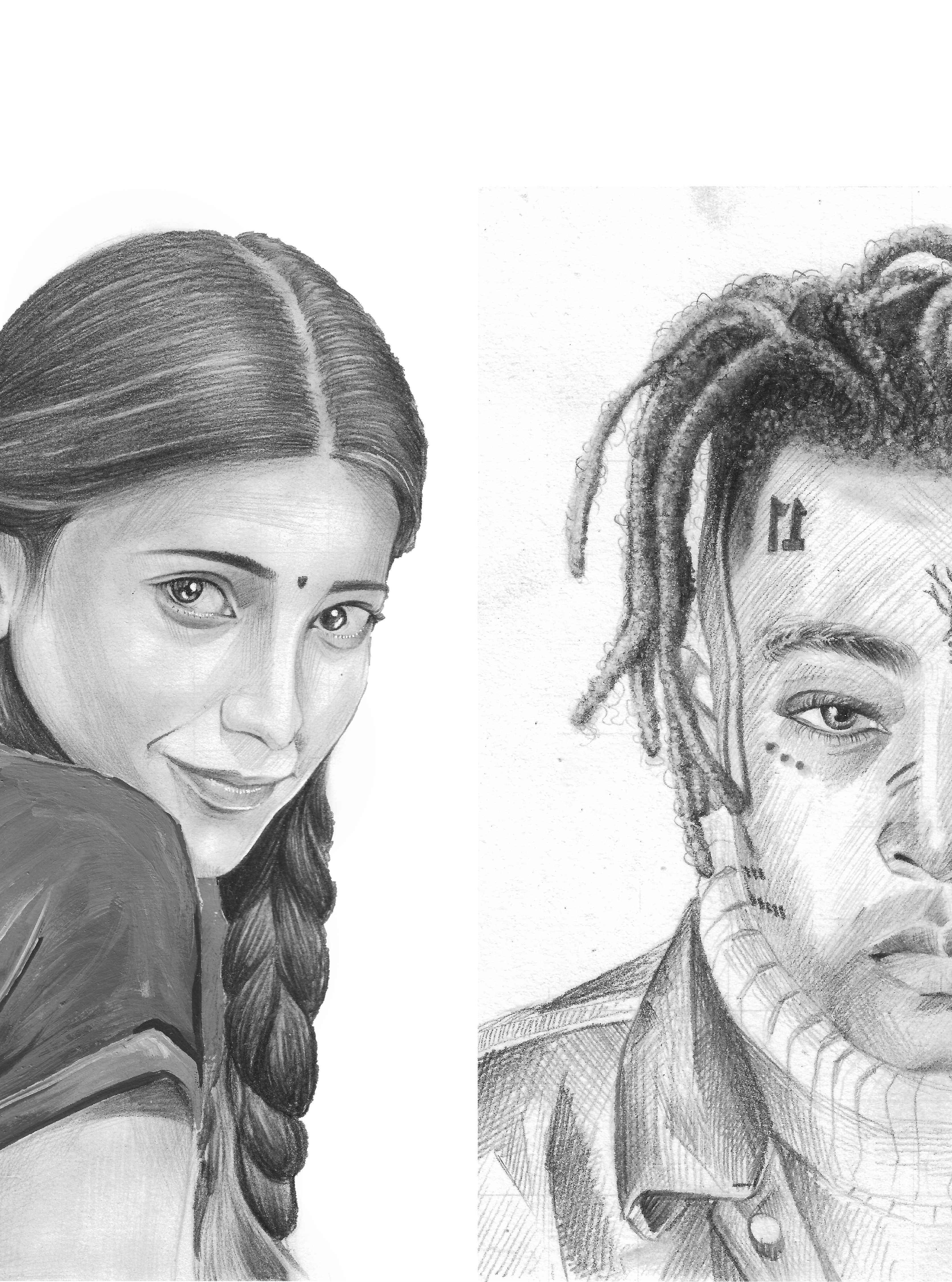 He has made 2000+ commissioned artworks, in different mediums like graphite, charcoal, watercolour and colour pencils.
